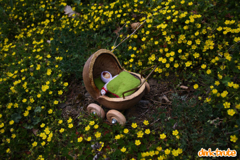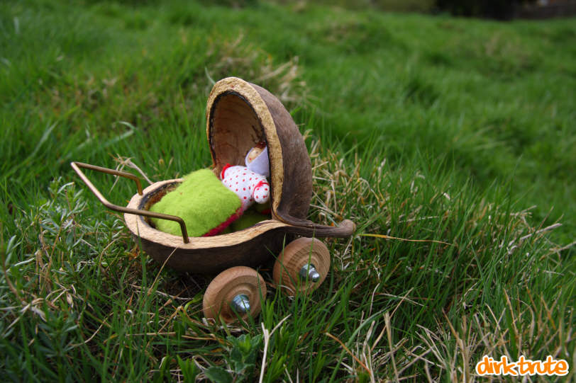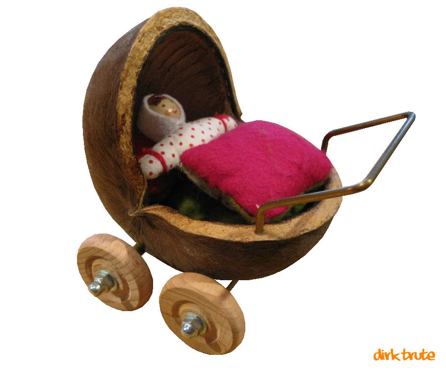 Puppenwagen aus einer Buddhanuss basteln