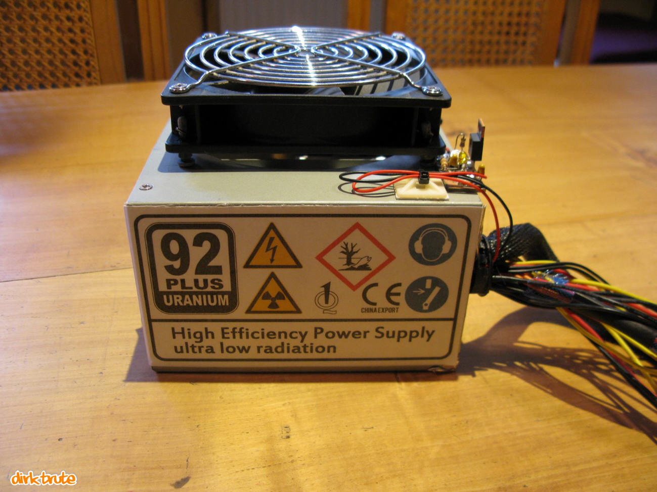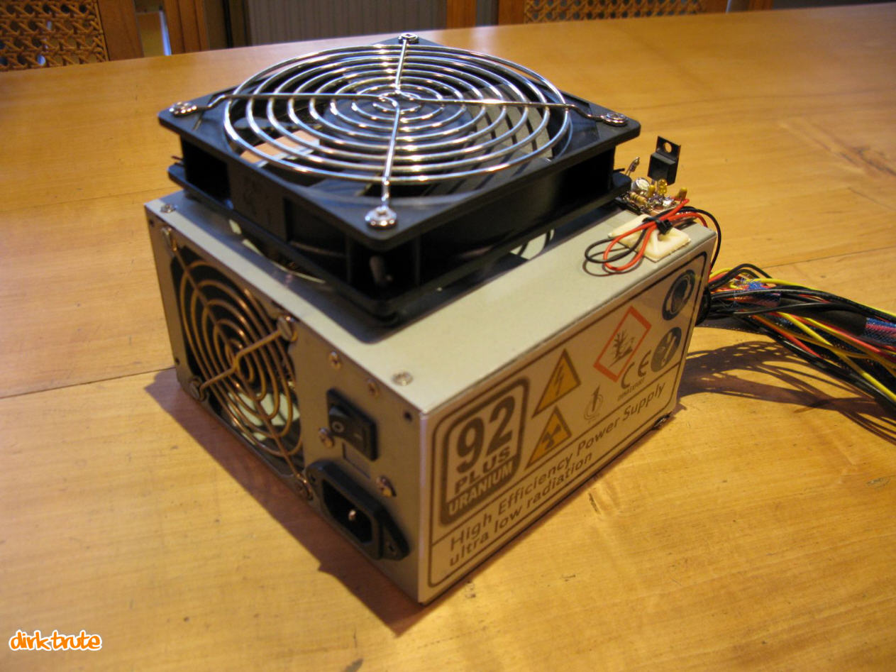 Leider ging es doch nicht ganz ohne Lüfter. Aus dem Gehäuse und dem Netzteil muss auch Wärme abgeführt werden. Das Netzteil mit einer Wasserkühlung zu versehen war mir etwas zu heißt. Besser gesagt zu gefährlich.