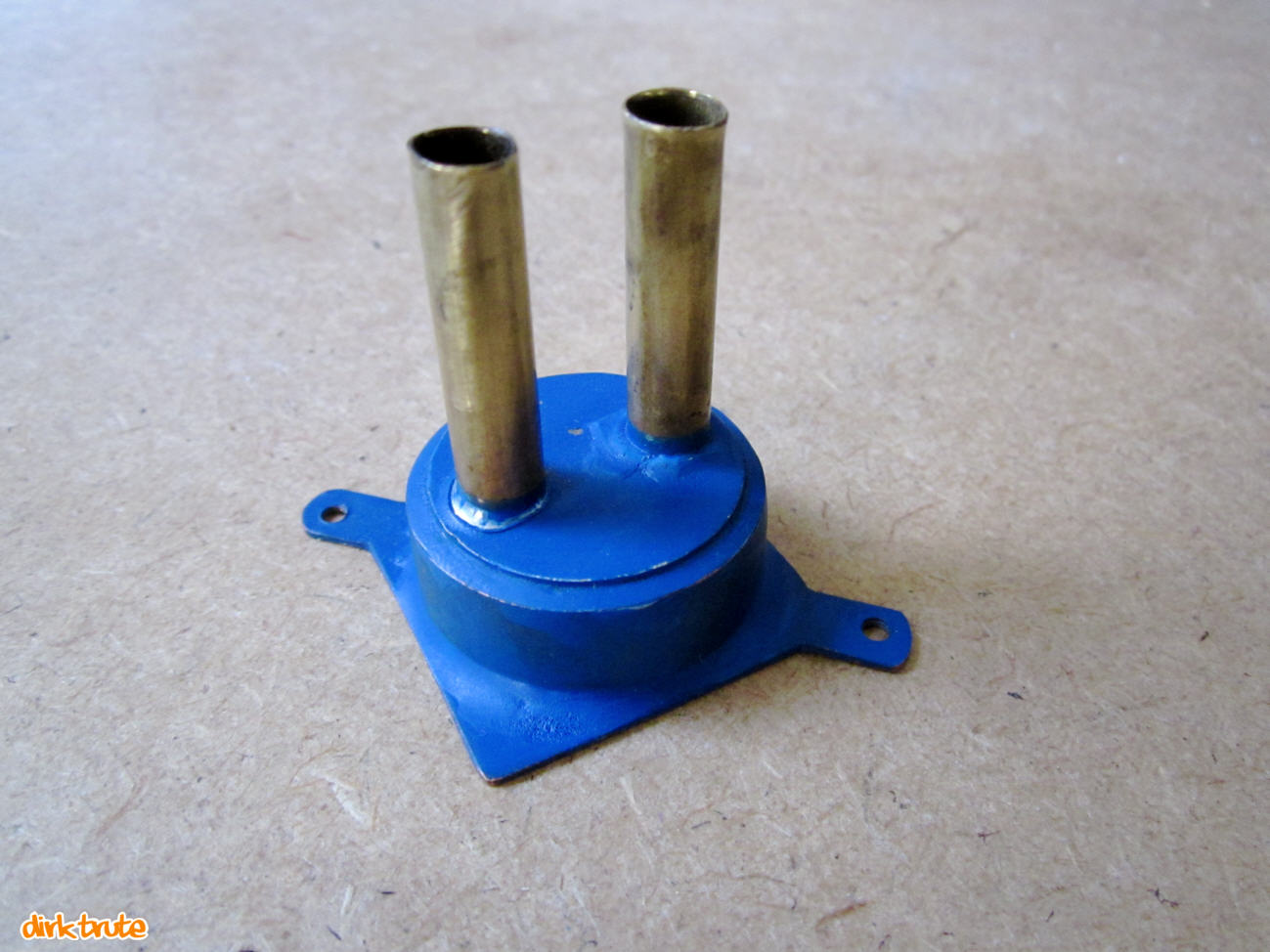 Alle Teile wurden zusammen in einem Arbeitsgang mittels Gasbrenner verlötet. Das Bodenblech wurde Plan geschliffen und der Rest gereinigt. Dieses Mal entschied ich mich für eine hübsche blaue Lackierung.