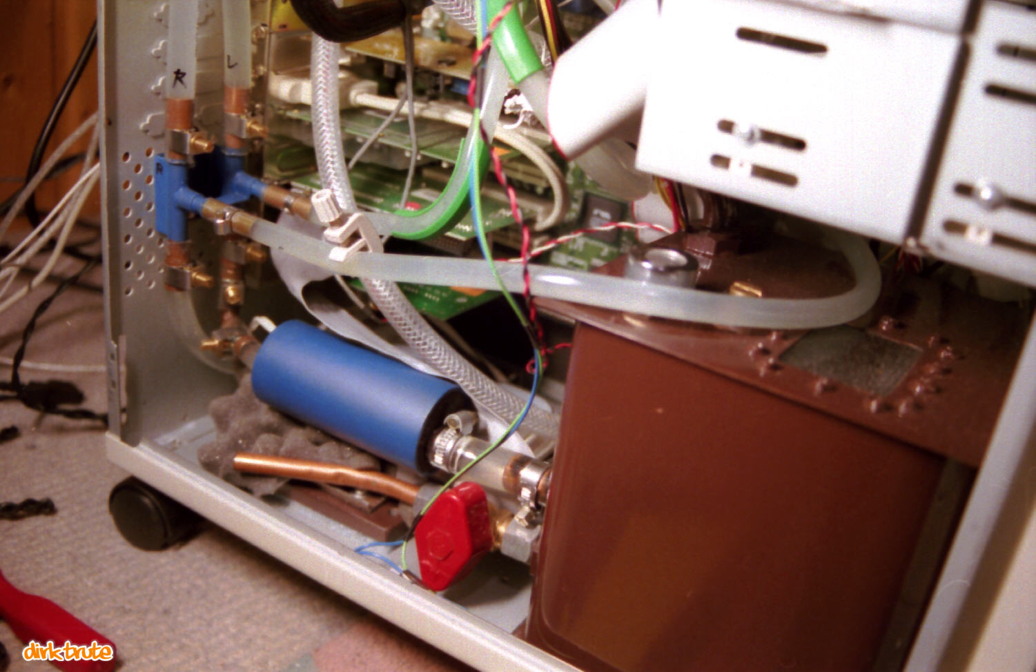 Aber wieder zu meiner Idee. Im Internet gab es über den kompletten Selbstbau einer Wasserkühlung für den PC nicht besonders viel. Dies war zu Zeiten, in denen unterschiedliche Suchmaschinen sogar noch unterschiedliche Ergebnisse lieferten. Interessant fand ich jedoch PC-Kühlungen mit Kühlschrankkompressoren und viel FCKW. Wasser war mir dann von der Handhabung her doch viel sympathischer.